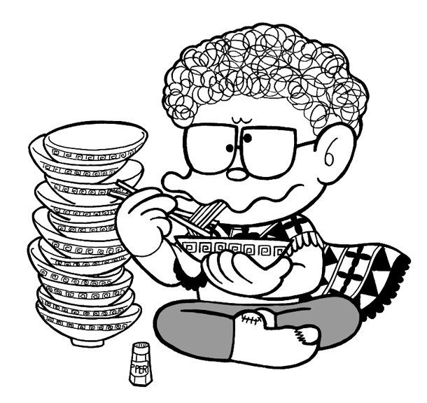 なんで頭に焼きそば載せとるんや