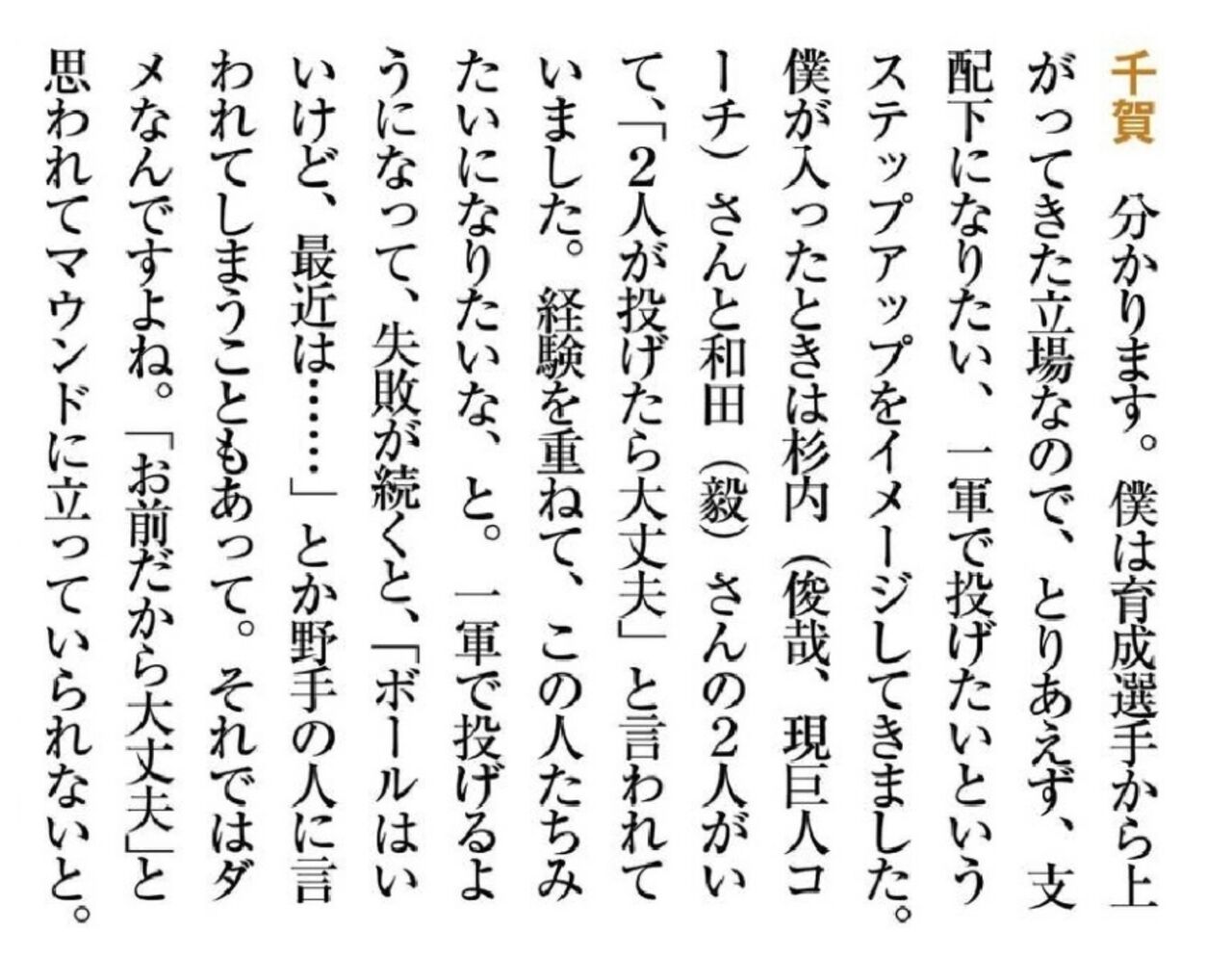 「菅野さんの球を本当に楽しみにしていたんです。打席に立ったらどういうふうに見えるんだろうって。なくなったときはショックでしたね」